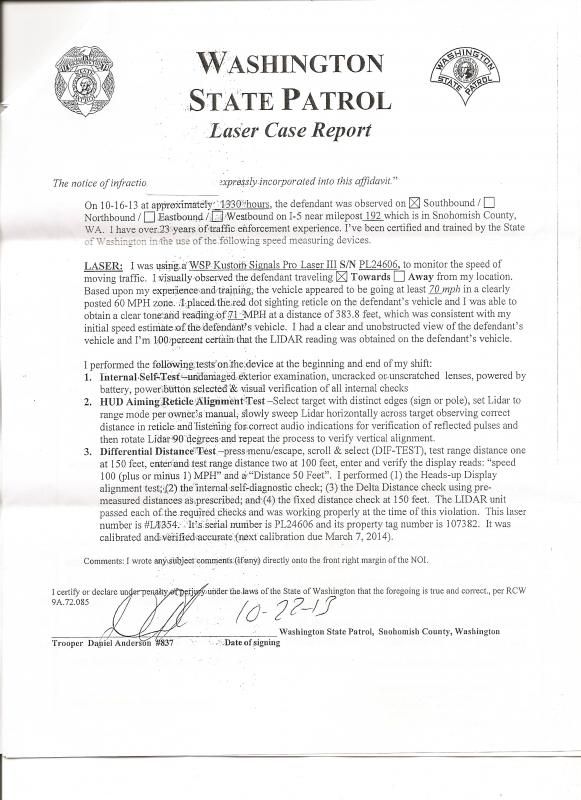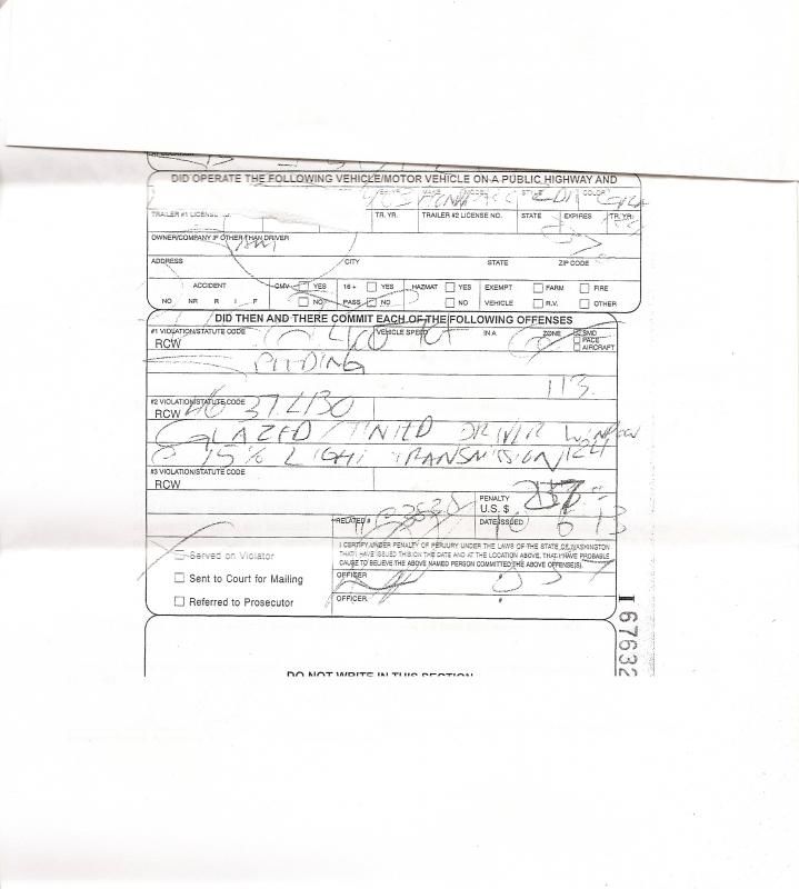 I won't bore you with specifics other than that it was a foggy day, there was heavy traffic and the wsp motorcycle trooper almost certainly lost site of my vehicle, seeing as i was pulled over about a mile down i5 after exit 192